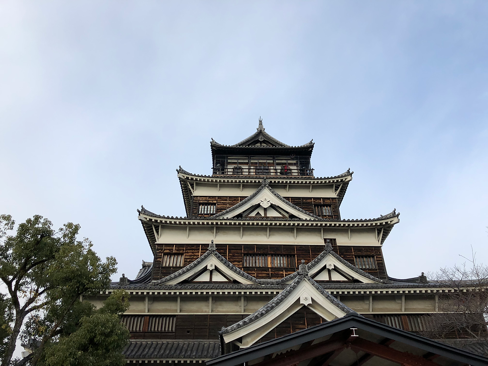 Rápidamente se llega al emblemático e imponente Castillo de Hiroshima, construido originalmente en 1590 y luego destruido por el bombardeo atómico en 1945. Fue reconstruido en 1958 y sirve como museo de la historia de Hiroshima antes de la Segunda Guerra Mundial. Lo impresionante de este lugar, es que queda en medio de dos brazos del río que corre a la ciudad y, a su vez, tiene sus fortalezas de piedra que dan a unos canales artificiales que rodean a toda la estructura, por lo que para llegar al mismo debes pasar por un puente y cruzar sus bellos jardines hasta la gran puerta de madera que intimida pero te invita a recorrerlo.